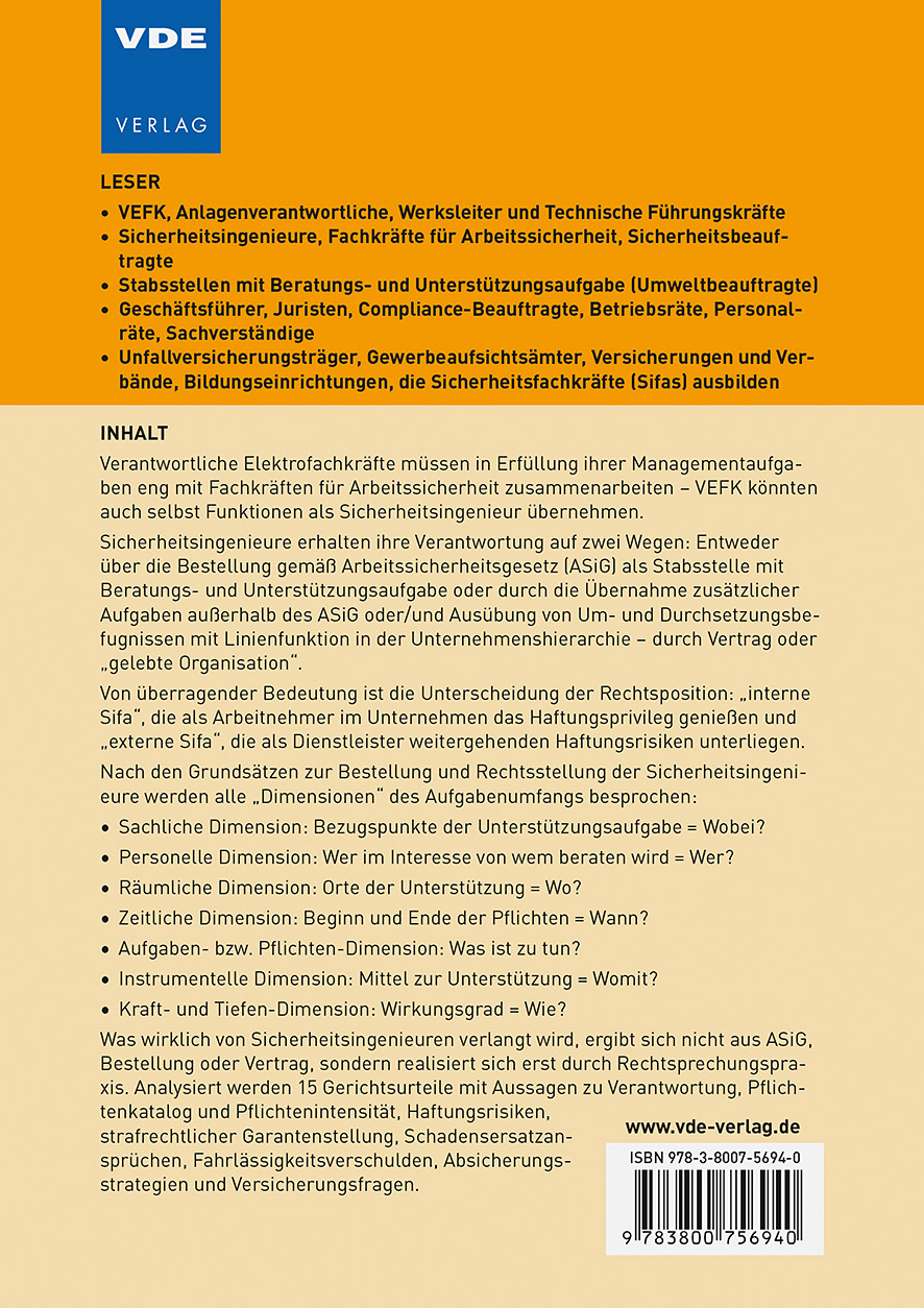 | Schlagworte | Arbeitsschutz • Arbeitssicherheitsgesetz • ASiG • Betriebsorganisation • DGUV-Information • DGUV Vorschrift 1 • DGUV Vorschrift 2 • Fachkraft fürArbeitssicherheit • FaSi • gefährdungsbeurteilung • Haftung • Sicherheitsbeauftragter • Sicherheitsingenieur • SiFa • VEFK |