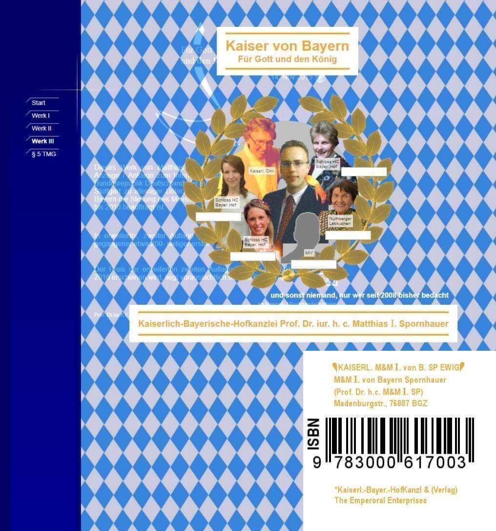 | Schlagworte | Festschrift • Festschrift 3.5.2020/21 (26.05.2018) • Fuer Gott und den Koenig • FuerGottunddenKoenig/ Kaiser&in • Für Gott und den König • FÜR GOTT UND DEN KÖNIG/ KAISER&IN • Für Gott und den König/ Kaiser&in M&M I. von B. SP • Kaiserin Margarita I. von B. SP • Kaiserin von Bayern • Kaiserlich- Bayerische- HofKanzlei Prof. Dr. iur. h.c. Matthias I. Spornhauer / HofKanzl & (Verlag) • Kaiserlich- Bayerische- HofKanzlei Prof. Dr. iur. h.c. Matthias I. Spornhauer RechtsanwaltsKanzlei • Kaiserlich- Bayerische- HofKanzlei Prof. Dr. sc.mus. h.c. / Kaiserin Margarita I. Spornhauer Prof. Dr. iur. h.c. / Kaiser Matthias I. Spornhauer HofKanzl & (Verlag) • KAISERL. M&M I. VON B. SP • KAISER MATTHIAS I. VON B. SP • Kaiser von Bayern • Matthias Margarita Spornhauer • Prof. Dr. h.c. M&M I. Spornhauer • ROM Pd 3.5.2020/21 • Spornhauer, Margarita • Spornhauer, Matthias • The Emperoral Enterprises |