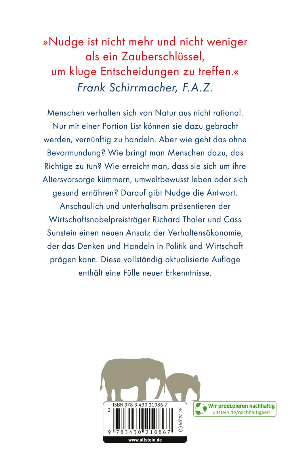 Jetzt haben Richard Thaler und Cass Sunstein das Buch überarbeitet und dabei ihre Erfahrungen innerhalb und außerhalb der Regierung in den letzten zwölf Jahren sowie eine Fülle neuer Forschungsergebnisse eingebracht. Diese aktualisierte Ausgabe bietet sowohl eingefleischten Fans als auch Neulingen eine Fülle neuer Einblicke in ein breites Spektrum von Themen, mit denen wir in unserem täglichen Leben konfrontiert sind: Gesundheit, persönliche Finanzen, Klimawandel und "Sludge" (Papierkram und andere Belästigungen, die uns davon abhalten, das zu bekommen, was wir wollen) - und das alles unter Einhaltung einer der Grundregeln des Anstupsens: Haben Sie Spaß!