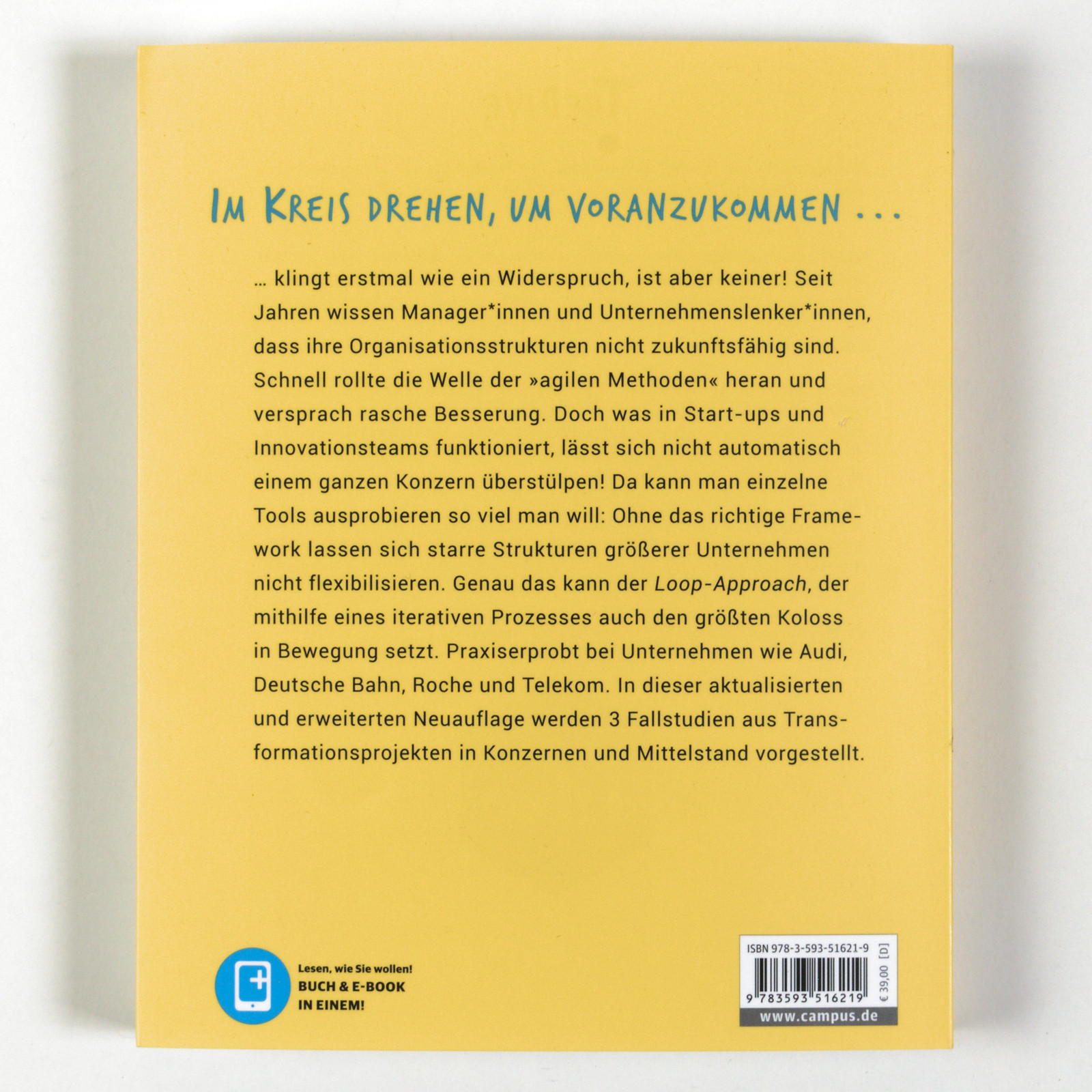 … klingt erstmal wie ein Widerspruch, ist aber keiner! Seit Jahren wissen Manager*innen und Unternehmenslenker*innen, dass ihre Organisationsstrukturen nicht zukunftsfähig sind. Schnell rollte die Welle der »agilen Methoden« heran und versprach rasche Besserung. Doch was in Start-ups und Innovationsteams funktioniert, lässt sich nicht automatisch einem ganzen Konzern überstülpen! Da kann man einzelne Tools ausprobieren so viel man will: Ohne das richtige Framework lassen sich starre Strukturen größerer Unternehmen nicht flexibilisieren. Genau das kann der Loop-Approach, der mithilfe eines iterativen Prozesses auch den größten Koloss in Bewegung setzt. Praxiserprobt bei Unternehmen wie Audi, Deutsche Bahn, Roche und Telekom.