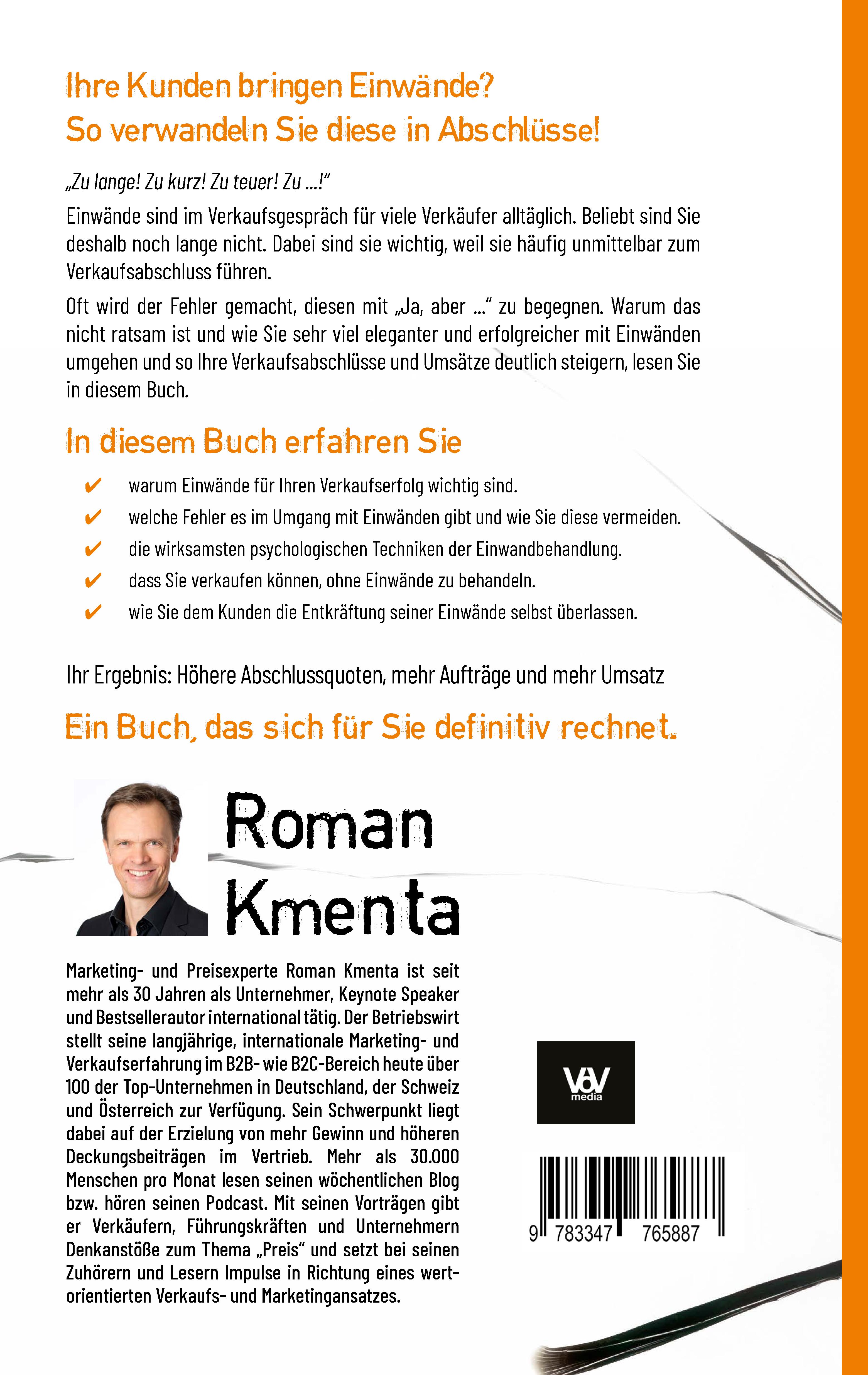 Marketing- und Vertriebsexperte Roman Kmenta ist seit mehr als 30 Jahren als Unternehmer, Keynote Speaker und Bestsellerautor international tätig. Der Betriebswirt und Serienunternehmer stellt seine langjährige, internationale Marketing- und Verkaufserfahrung im B2B- wie B2C-Bereich heute über 100 Top-Unternehmen sowie vielen Kleinunternehmen und Einzelunternehmern in Deutschland, der Schweiz und Österreich zur Verfügung. Mehr als 100.000 Menschen lesen wöchentlich seinen Blog bzw. hören seinen Podcast und verfolgen seine Beiträge auf Social Media. Mit seinen Vorträgen gibt er Verkäufern, Führungskräften und Unternehmern Denkanstöße zum Thema „profitables Wachstum“ und setzt bei seinen Zuhörern und Lesern Impulse in Richtung eines wertorientierten Verkaufs- und Marketingansatzes. Kontakt: +43-676-9653342 rk@romankmenta.com www.romankmenta.com