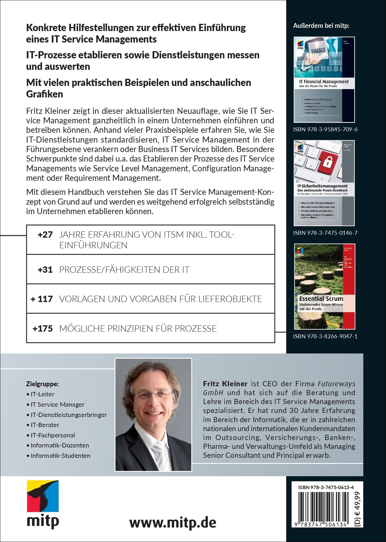 Fritz Kleiner zeigt in dieser aktualisierten Neuauflage, wie Sie IT Service Management ganzheitlich in einem Unternehmen einführen und betreiben können. Anhand vieler Praxisbeispiele erfahren Sie, wie Sie IT-Dienstleistungen standardisieren, IT Service Management in der Führungsebene verankern oder Business IT Services bilden. Besondere Schwerpunkte sind dabei u.a. das Etablieren der Prozesse des IT Service Managements wie Service Level Management, Configuration Management oder Requirement Management.
