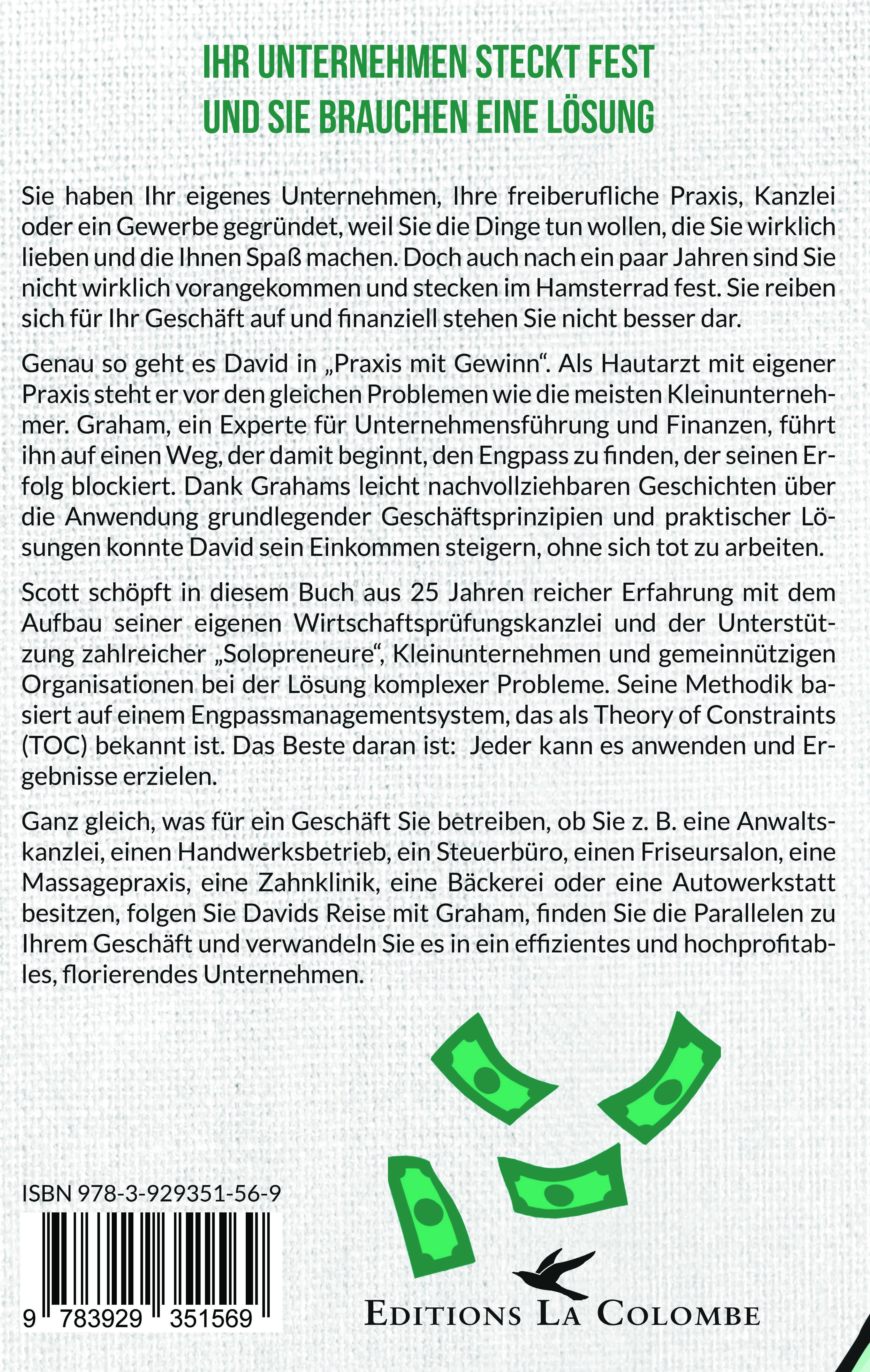 Scott schöpft in diesem Buch aus seiner reichen Erfahrung mit seiner Wirtschaftsprüfungskanzlei und der Unterstützung von „Solopreneuren“, Kleinunternehmen und gemeinnützigen Organisationen bei der Lösung komplexer Probleme. Jeder kann mit seiner TOC-basierten Methodik Ergebnisse erzielen. Folgen Sie Davids Reise, finden Sie die Parallelen zu Ihrem Geschäft und verwandeln Sie es in ein effizientes und hochprofitables Unternehmen – und machen Sie das, was Sie gerne tun und lieben!