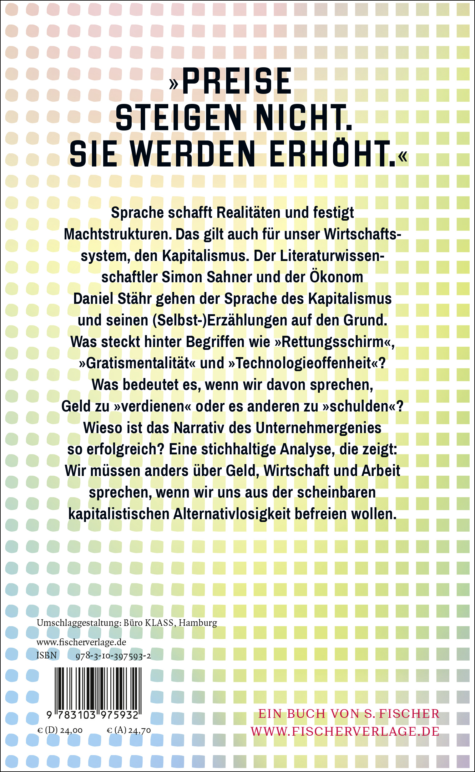Wir müssen anders über Geld und Wirtschaft sprechen, wenn wir zu einem gerechteren Miteinander gelangen wollen: Der Literaturwissenschaftler Simon Sahner und der Ökonom Daniel Stähr gehen der Sprache des Kapitalismus auf den Grund.