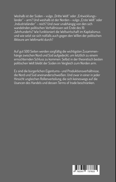 Weshalb ist der Süden - vulgo "Dritte Welt" oder "Entwicklungsländer" - arm? Und weshalb ist der Norden - vulgo "Erste Welt" oder "Industrieländer" - reich? Und zwar unabhängig von den sich wandelnden politischen Verhältnissen seit Ende des 19. Jahrhunderts und unabhängig von den unterschiedlichen, sich abwechselnden politischen Regimes im Norden, als auch im Süden? Wie funktioniert die Weltwirtschaft im Kapitalismus und wie setzt sie sich notfalls auch gegen den Willen der politischen Akteure am Weltmarkt durch? Sozusagen mit einer unsichtbaren Hand des Marktes, um einen Begriff von Adam Smith zu gebrauchen?Auf gut 500 Seiten werden sorgfältig die wichtigsten Zusammenhänge zwischen Nord und Süd aufgedeckt, um letztlich zu einem ernüchternden Schluss zu kommen: Selbst in der theoretisch besten politischen Welt bleibt der Süden im Vergleich zum Norden arm. Es sind die bürgerlichen Eigentums- und Produktionsverhältnisse, die Nord und Süd aneinanderschweißen. Und zwar in einer in jeder Hinsicht ungleichen Rollenverteilung, die sich keineswegs auf die Usancen des Handels und dessen Terms of trade beschränken.in paar Kapitel dieses Buches beschäftigen sich somit ziemlich ausführlich mit Theorie. Die Theorie ist hier aber nie Endzweck, sondern nur insofern zu besprechen, als es darum geht, die Welt von heute mit all ihren Offensichtlichkeiten besser zu verstehen. Oder anders gesagt: Es geht gerade darum, das Offensichtliche auf nicht gleich sichtbare ökonomische Kräfte zurückzuführen und damit zu entschlüsseln. Der Text ist immer wieder mit empirischen Beobachtungen "durchsetzt". Indes sind die Beobachtungen nicht einfach nur Impressionen, sondern Zahlen, die sich zueinander in ein Verhältnis setzen lassen. Die gewählten Indices basieren auf sorgfältig aufbereiteten Daten, etwa von The World Bank, Bank for International Settlements, Penn World Table und The Observatory of Economic Complexity - um nur die wichtigsten Quellen zu nennen. Auf dieser Basis können wir die wichtigsten ökonomischen Aspekte, wie etwa die Unterschiede im Kapitalreichtum, der Produktivität, der Kapitalzusammensetzung, der globalen Verteilung von Finanzinstrumenten und Ähnliches abbilden. Schließlich bedarf selbst die beste Theorie der challenge durch die Empirie, um ihre Plausibilität zu stärken. Und so manche Annahmen unseres common sense über den Süden und den Norden werden bereits durch Rechenergebnisse widerlegt. Die Beschäftigung mit der Empirie ist besonders wertvoll, wenn sie hilft, falsche Vorannahmen abzulegen und der Theorie neue Fragestellungen zu eröffnen. Freilich gilt auch für dieses Buch wie für viele andere: Berechnungen haben meist eine geringere "Halbwertszeit" als abstrakte Sätze: Bessere Quellen, geschicktere Auswertungsverfahren und einfach weniger Fehler führen gerade auf dem Terrain der Ökonomie ganz schnell zu anderen Ergebnissen. Im günstigsten Falle profitiert die Aufarbeitung empirischer Rohdaten von dem spezifischen Untersuchungsdesign einer guten Theorie. Martin Seelos macht dies bei jedem Schritt der Berechnung explizit und transparent - sodass es den Lesern selbst überlassen bleibt, den Schlüssen zu folgen.