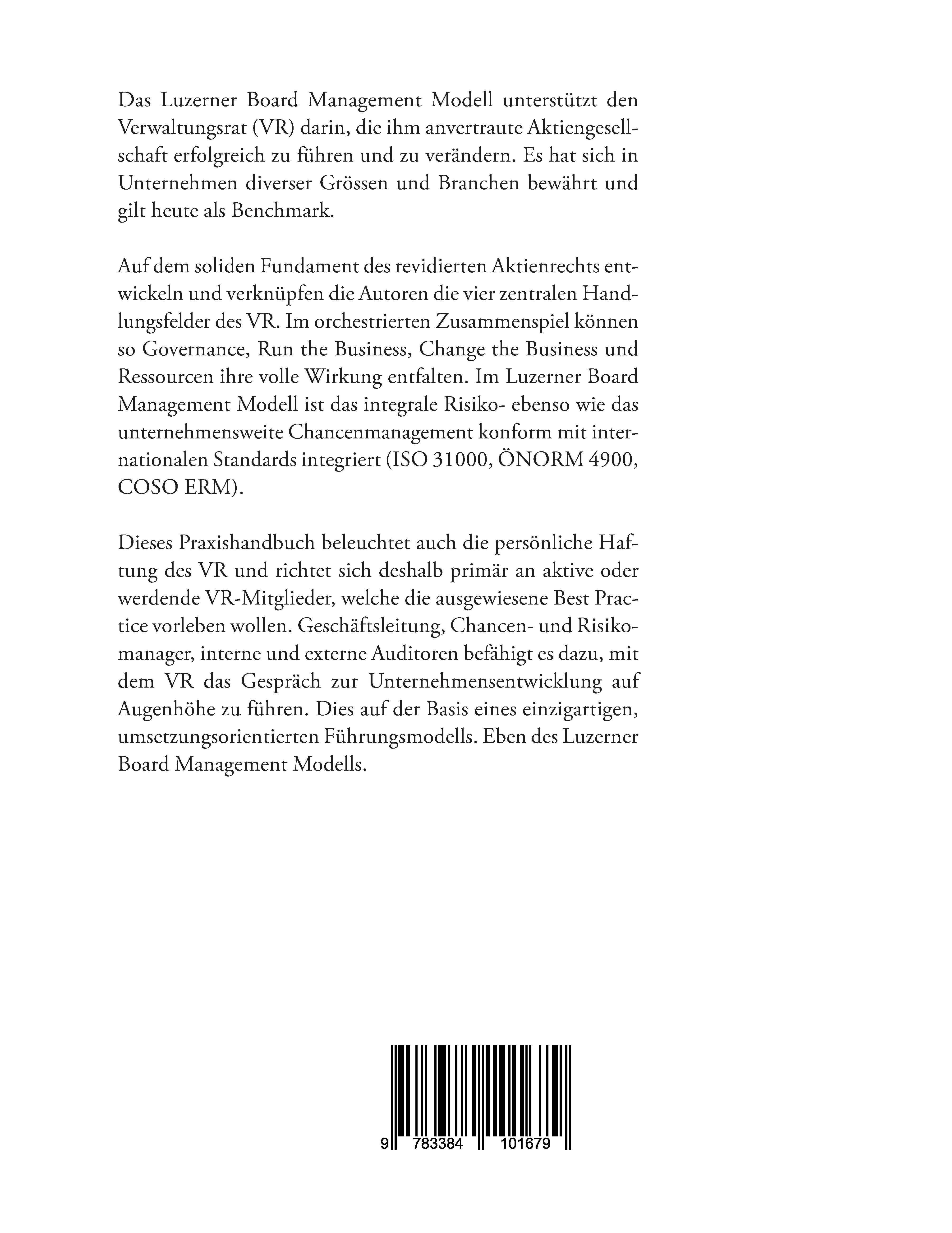 Das Luzerner Board Management Modell - das rechtlich solide verankerte Referenzmodell mit 31 Illustrationen und zahlreichen Impulsfragen zur Vertiefung in den Führungsgremien jeder Grösse und Branche.