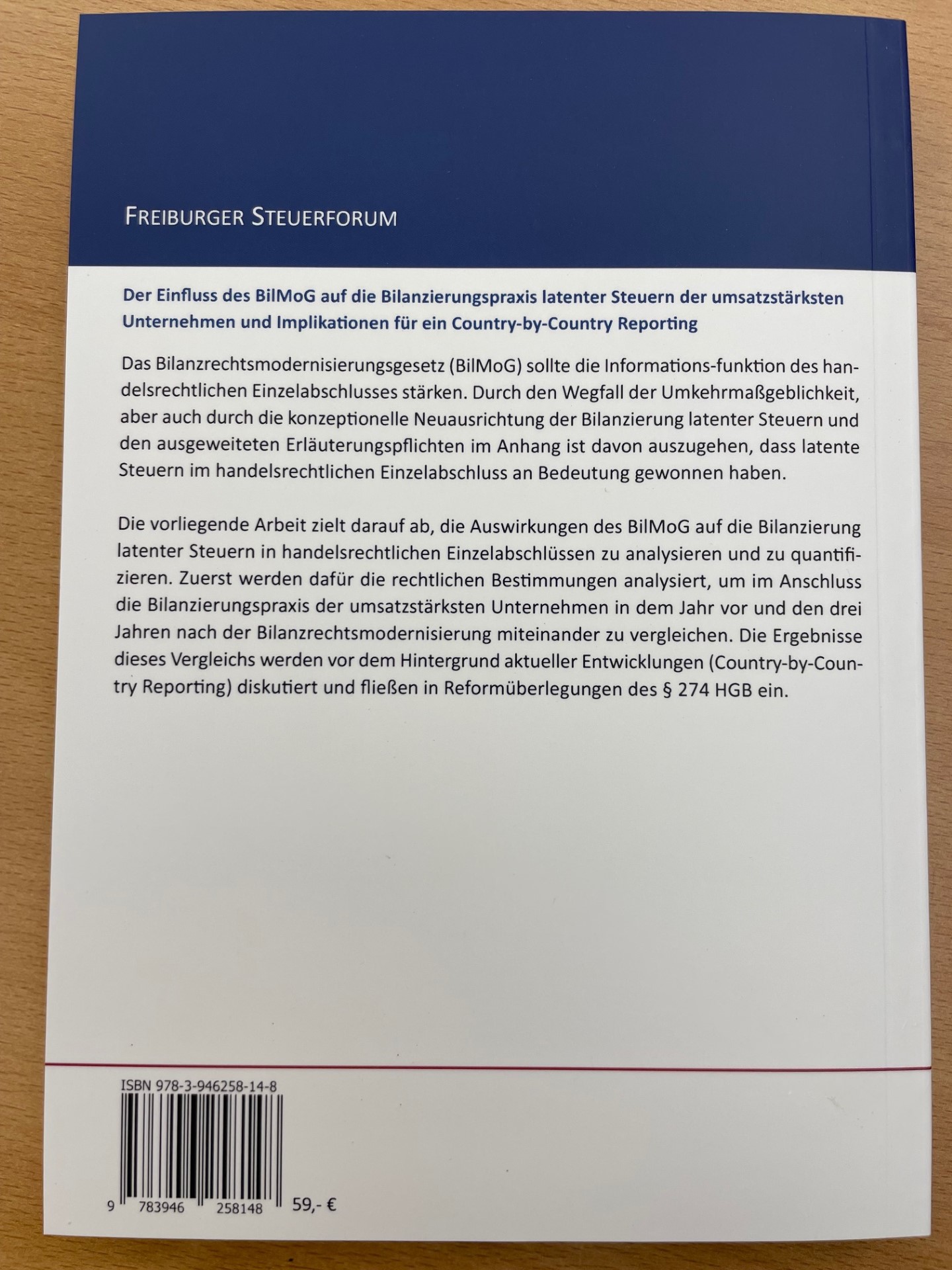 Die vorliegende Arbeit zielt darauf ab, die Auswirkungen des BilMoG auf die Bilanzierung latenter Steuern in handelsrechtlichen Einzelabschlüssen zu analysieren und zu quantifizieren. Zuerst werden dafür die rechtlichen Bestimmungen analysiert, um im Anschluss die Bilanzierungspraxis der umsatzstärksten Unternehmen in dem Jahr vor und den drei Jahren nach der Bilanzrechtsmodernisierung miteinander zu vergleichen. Die Ergebnisse dieses Vergleichs werden vor dem Hintergrund aktueller Entwicklungen (Country-by-Country Reporting) diskutiert und fließen in Reformüberlegungen des § 274 HGB ein.