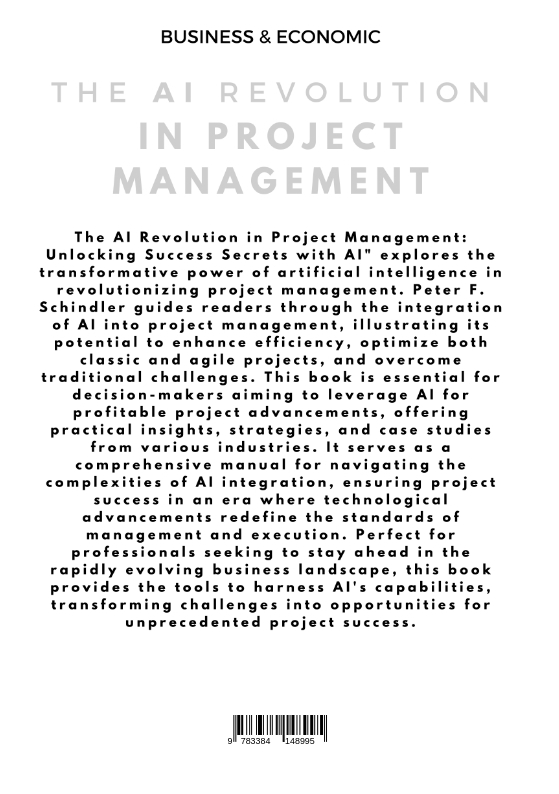 The AI Revolution in Project Management: Unlocking Success Secrets with AI" explores the transformative power of artificial intelligence in revolutionizing project management. Peter F. Schindler guides readers through the integration of AI into project management, illustrating its potential to enhance efficiency, optimize both classic and agile projects, and overcome traditional challenges. This book is essential for decision-makers aiming to leverage AI for profitable project advancements, offering practical insights, strategies, and case studies from various industries. It serves as a comprehensive manual for navigating the complexities of AI integration, ensuring project success in an era where technological advancements redefine the standards of management and execution. Perfect for professionals seeking to stay ahead in the rapidly evolving business landscape, this book provides the tools to harness AI's capabilities, transforming challenges into opportunities for unprecedented project success.