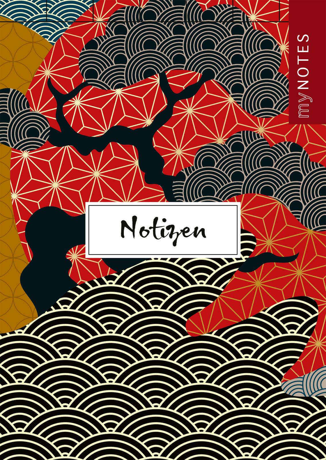 - Aufwendig veredelt: Schimmerndes Gold durchzieht die geometrischen Muster, die in satten Farben das Cover zieren. Der Notizblock erscheint so in natürlicher Eleganz, die typisch ist für Japan