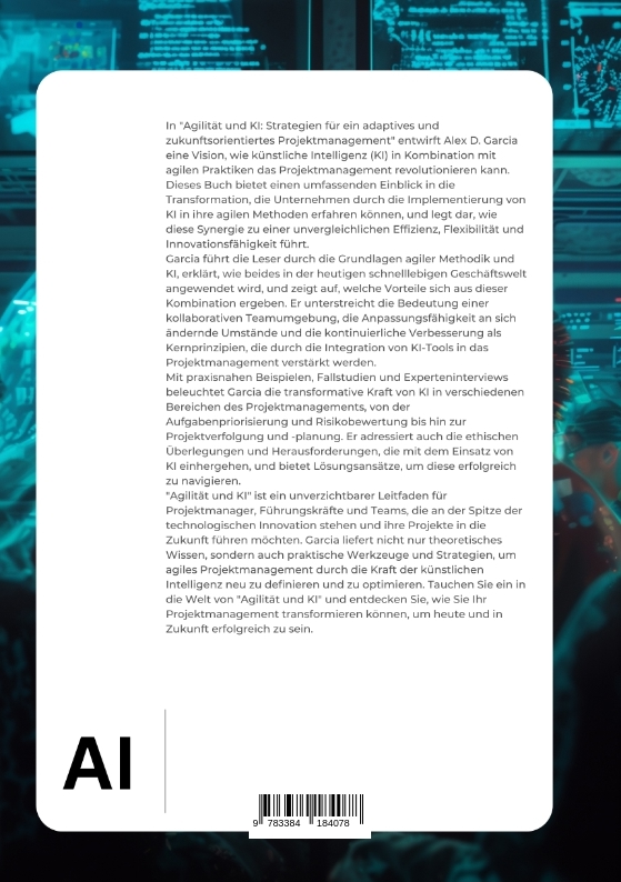 In "Agilität und KI: Strategien für ein adaptives und zukunftsorientiertes Projektmanagement" entwirft Alex D. Garcia eine Vision, wie künstliche Intelligenz (KI) in Kombination mit agilen Praktiken das Projektmanagement revolutionieren kann. Dieses Buch bietet einen umfassenden Einblick in die Transformation, die Unternehmen durch die Implementierung von KI in ihre agilen Methoden erfahren können, und legt dar, wie diese Synergie zu einer unvergleichlichen Effizienz, Flexibilität und Innovationsfähigkeit führt.Garcia führt die Leser durch die Grundlagen agiler Methodik und KI, erklärt, wie beides in der heutigen schnelllebigen Geschäftswelt angewendet wird, und zeigt auf, welche Vorteile sich aus dieser Kombination ergeben. Er unterstreicht die Bedeutung einer kollaborativen Teamumgebung, die Anpassungsfähigkeit an sich ändernde Umstände und die kontinuierliche Verbesserung als Kernprinzipien, die durch die Integration von KI-Tools in das Projektmanagement verstärkt werden.Mit praxisnahen Beispielen, Fallstudien und Experteninterviews beleuchtet Garcia die transformative Kraft von KI in verschiedenen Bereichen des Projektmanagements, von der Aufgabenpriorisierung und Risikobewertung bis hin zur Projektverfolgung und -planung. Er adressiert auch die ethischen Überlegungen und Herausforderungen, die mit dem Einsatz von KI einhergehen, und bietet Lösungsansätze, um diese erfolgreich zu navigieren."Agilität und KI" ist ein unverzichtbarer Leitfaden für Projektmanager, Führungskräfte und Teams, die an der Spitze der technologischen Innovation stehen und ihre Projekte in die Zukunft führen möchten. Garcia liefert nicht nur theoretisches Wissen, sondern auch praktische Werkzeuge und Strategien, um agiles Projektmanagement durch die Kraft der künstlichen Intelligenz neu zu definieren und zu optimieren. Tauchen Sie ein in die Welt von "Agilität und KI" und entdecken Sie, wie Sie Ihr Projektmanagement transformieren können, um heute und in Zukunft erfolgreich zu sein.