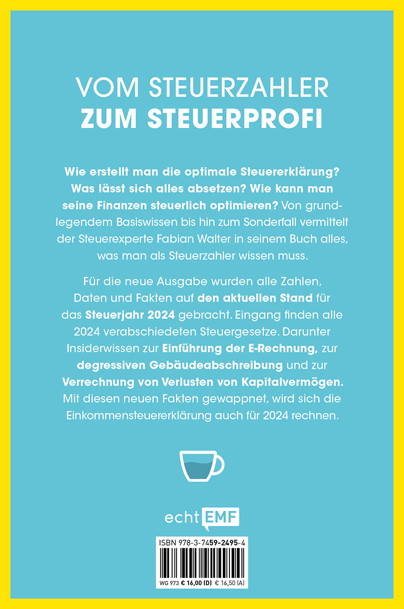 Steuerexperte Fabian Walter bringt Licht ins Dunkel des Steueruniversums: Wie erstelle ich die perfekte Steuererklärung? Was kann ich von der Steuer absetzen? Wie kann ich - von Eigenheim über Geldanlage bis hin zur Altersvorsorge - meine Finanzen steuerlich optimieren?