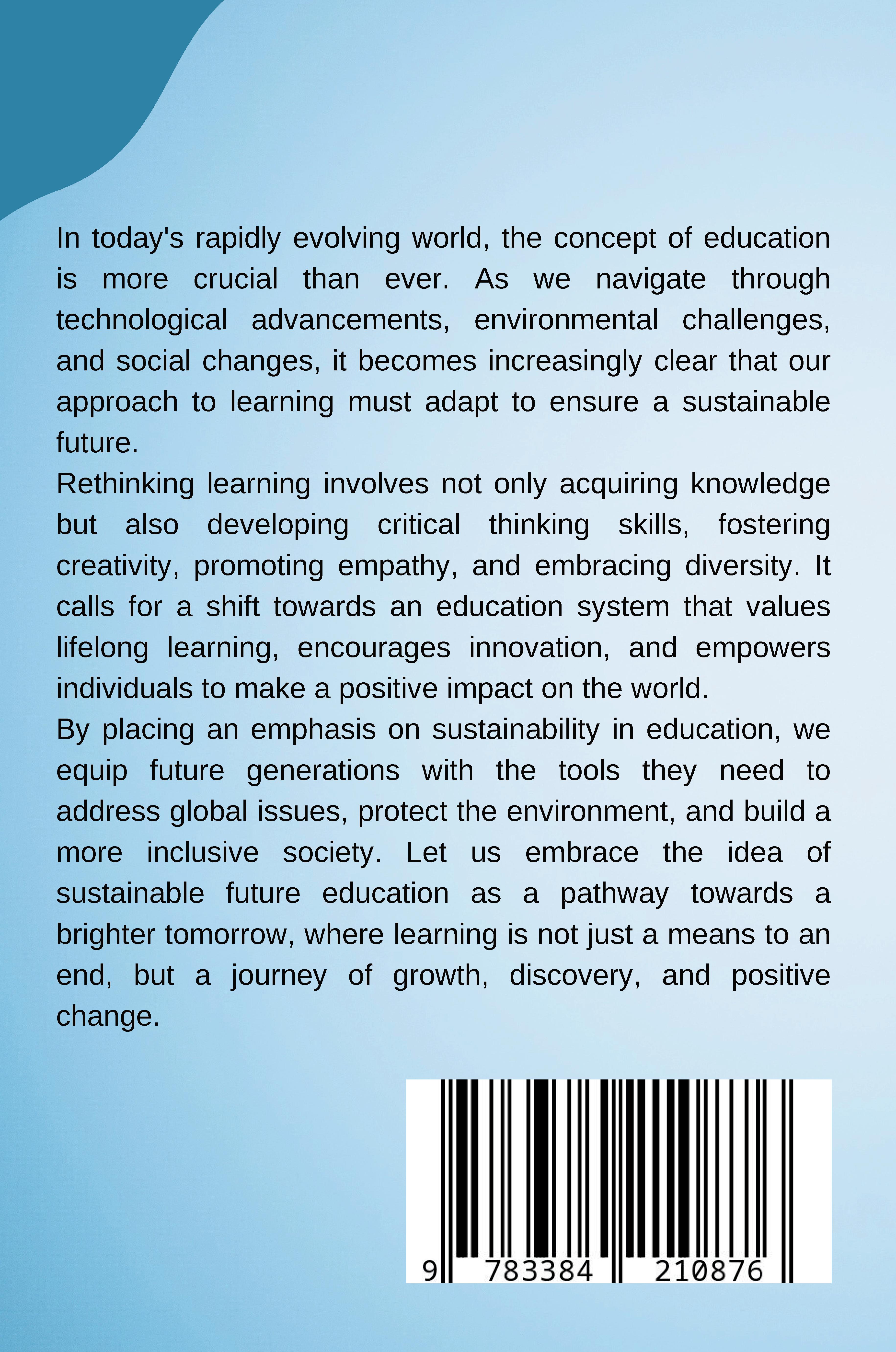 "Rethink Learning: Sustainable Future Education" is a groundbreaking exploration by renowned educator Prof. James Pat, offering a compelling vision for transforming education towards sustainability. Drawing from decades of experience and research, Prof. Pat presents actionable strategies and insights to reimagine learning in the context of environmental and societal challenges. This vital work underscores the urgent need to integrate sustainability into education systems worldwide, empowering educators, policymakers, and stakeholders to shape a more equitable and eco-conscious future. Through practical examples and innovative approaches, Prof. Pat advocates for curriculum reform, emphasizing global citizenship, environmental stewardship, and community engagement. The book delves into topics such as eco-friendly school practices, curriculum design for sustainability, and the role of technology in fostering meaningful learning experiences. Prof. Pat's vision inspires readers to rethink traditional educational paradigms and embrace a holistic approach that prepares learners to navigate complex global issues. "Rethink Learning: Sustainable Future Education" is an essential resource for educators, school administrators, policymakers, and anyone passionate about creating a more sustainable and equitable world through transformative education.