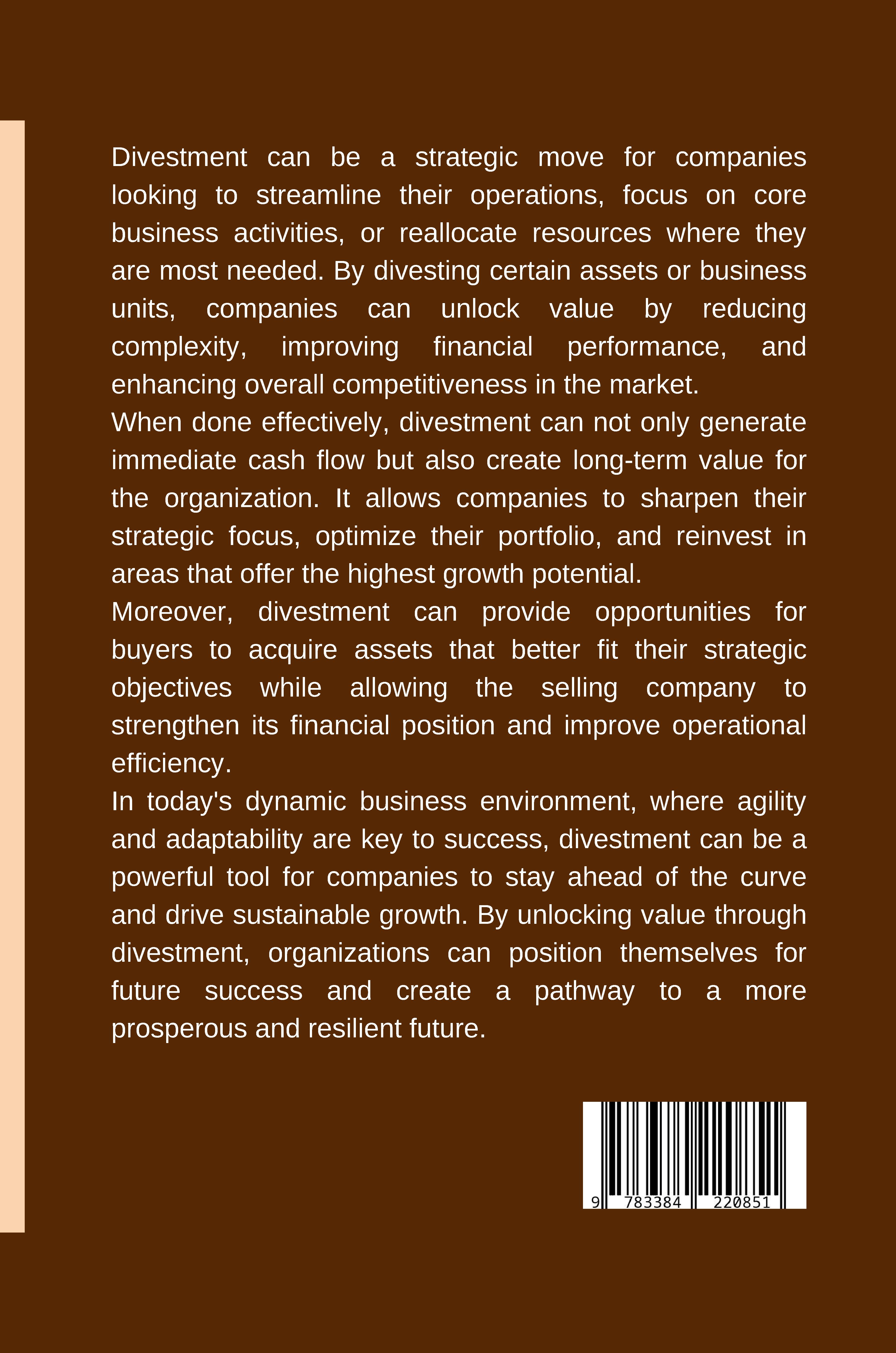 "Divest for Growth: A Strategic Guide " isn't a dusty textbook, but a roadmap to maximizing your company's potential. Learn how to identify underperforming assets and strategically divest them to free up capital. This capital can then be used to streamline operations, pay down debt, or fuel growth initiatives. Discover how divestitures can sharpen your focus on core competencies, improve profitability, and ultimately create lasting value for shareholders. Filled with real-world examples and practical guidance, this book is your key to unlocking hidden value within your organization.