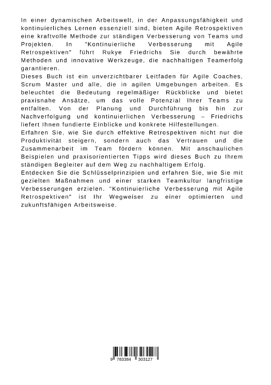 In einer dynamischen Arbeitswelt, in der Anpassungsfähigkeit und kontinuierliches Lernen essenziell sind, bieten Agile Retrospektiven eine kraftvolle Methode zur ständigen Verbesserung von Teams und Projekten. In "Kontinuierliche Verbesserung mit Agile Retrospektiven" führt Rukye Friedrichs Sie durch bewährte Methoden und innovative Werkzeuge, die nachhaltigen Teamerfolg garantieren.Dieses Buch ist ein unverzichtbarer Leitfaden für Agile Coaches, Scrum Master und alle, die in agilen Umgebungen arbeiten. Es beleuchtet die Bedeutung regelmäßiger Rückblicke und bietet praxisnahe Ansätze, um das volle Potenzial Ihrer Teams zu entfalten. Von der Planung und Durchführung bis hin zur Nachverfolgung und kontinuierlichen Verbesserung - Friedrichs liefert Ihnen fundierte Einblicke und konkrete Hilfestellungen.Erfahren Sie, wie Sie durch effektive Retrospektiven nicht nur die Produktivität steigern, sondern auch das Vertrauen und die Zusammenarbeit im Team fördern können. Mit anschaulichen Beispielen und praxisorientierten Tipps wird dieses Buch zu Ihrem ständigen Begleiter auf dem Weg zu nachhaltigem Erfolg.Entdecken Sie die Schlüsselprinzipien und erfahren Sie, wie Sie mit gezielten Maßnahmen und einer starken Teamkultur langfristige Verbesserungen erzielen. "Kontinuierliche Verbesserung mit Agile Retrospektiven" ist Ihr Wegweiser zu einer optimierten und zukunftsfähigen Arbeitsweise.