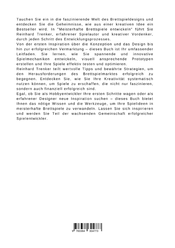 Tauchen Sie ein in die faszinierende Welt des Brettspieldesigns und entdecken Sie die Geheimnisse, wie aus einer kreativen Idee ein Bestseller wird. In "Meisterhafte Brettspiele entwickeln" führt Sie Reinhard Trenker, erfahrener Spielautor und kreativer Vordenker, durch jeden Schritt des Entwicklungsprozesses.Von der ersten Inspiration über die Konzeption und das Design bis hin zur erfolgreichen Vermarktung - dieses Buch ist Ihr umfassender Leitfaden. Sie lernen, wie Sie spannende und innovative Spielmechaniken entwickeln, visuell ansprechende Prototypen erstellen und Ihre Spiele effektiv testen und optimieren.Reinhard Trenker teilt wertvolle Tipps und bewährte Strategien, um den Herausforderungen des Brettspielmarktes erfolgreich zu begegnen. Entdecken Sie, wie Sie Ihre Kreativität systematisch nutzen können, um Spiele zu erschaffen, die nicht nur faszinieren, sondern auch finanziell erfolgreich sind.Egal, ob Sie als Hobbyentwickler Ihre ersten Schritte wagen oder als erfahrener Designer neue Inspiration suchen - dieses Buch bietet Ihnen das nötige Wissen und die Werkzeuge, um Ihre Spielideen in meisterhafte Brettspiele zu verwandeln. Lassen Sie sich inspirieren und werden Sie Teil der wachsenden Gemeinschaft erfolgreicher Spielentwickler.