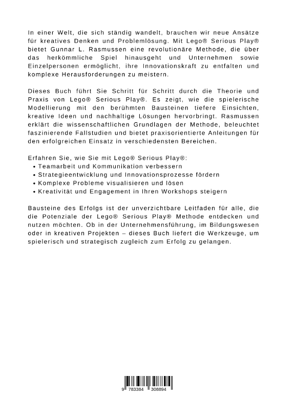 Gunnar L. Rasmussen, ein Pionier der Lego® Serious Play® Methode, teilt seine umfassende Erfahrung und sein fundiertes Wissen in diesem inspirierenden Werk. Tauchen Sie ein in die Welt des kreativen Denkens und erfahren Sie, wie Sie mit einfachen Bausteinen Großes erreichen können.