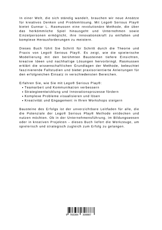 Gunnar L. Rasmussen, ein Pionier der Lego® Serious Play® Methode, teilt seine umfassende Erfahrung und sein fundiertes Wissen in diesem inspirierenden Werk. Tauchen Sie ein in die Welt des kreativen Denkens und erfahren Sie, wie Sie mit einfachen Bausteinen Großes erreichen können.