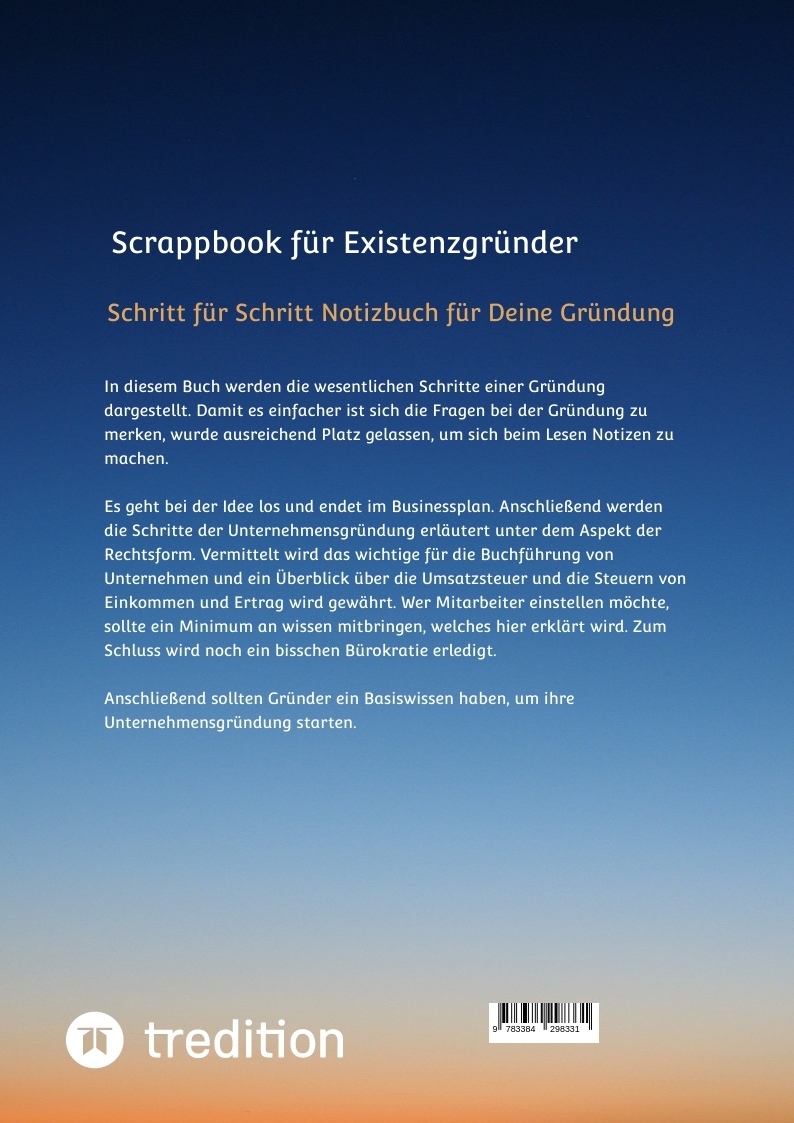 | Schlagworte | Buchführung • Businessplan • Existenzgründung • Steuern • Umsatzsteuer • Unternehmensgründung |
