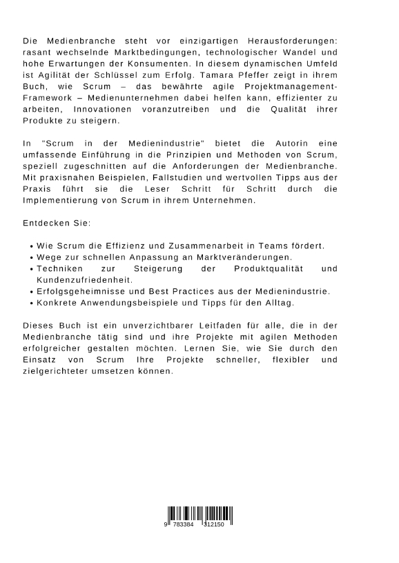 Die Medienbranche steht vor einzigartigen Herausforderungen: rasant wechselnde Marktbedingungen, technologischer Wandel und hohe Erwartungen der Konsumenten. In diesem dynamischen Umfeld ist Agilität der Schlüssel zum Erfolg. Tamara Pfeffer zeigt in ihrem Buch, wie Scrum - das bewährte agile Projektmanagement-Framework - Medienunternehmen dabei helfen kann, effizienter zu arbeiten, Innovationen voranzutreiben und die Qualität ihrer Produkte zu steigern.In "Scrum in der Medienindustrie" bietet die Autorin eine umfassende Einführung in die Prinzipien und Methoden von Scrum, speziell zugeschnitten auf die Anforderungen der Medienbranche. Mit praxisnahen Beispielen, Fallstudien und wertvollen Tipps aus der Praxis führt sie die Leser Schritt für Schritt durch die Implementierung von Scrum in ihrem Unternehmen.Entdecken Sie:Wie Scrum die Effizienz und Zusammenarbeit in Teams fördert.Wege zur schnellen Anpassung an Marktveränderungen.Techniken zur Steigerung der Produktqualität und Kundenzufriedenheit.Erfolgsgeheimnisse und Best Practices aus der Medienindustrie.Konkrete Anwendungsbeispiele und Tipps für den Alltag.Dieses Buch ist ein unverzichtbarer Leitfaden für alle, die in der Medienbranche tätig sind und ihre Projekte mit agilen Methoden erfolgreicher gestalten möchten. Lernen Sie, wie Sie durch den Einsatz von Scrum Ihre Projekte schneller, flexibler und zielgerichteter umsetzen können.