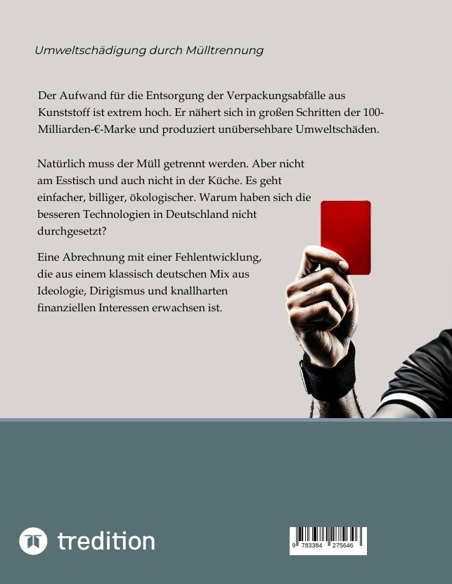 Der Autor zeigt auf, dass sich der ökologische Nutzen des Getrenntsammelns mittels gelbem Sack nach über dreißigjähriger Praxis immer noch unter Null bewegt. Er erläutert einen sparsameren und vor allem ökologisch vorteilhafteren Weg: Eine bereits vor über 20 Jahren entwickelte Spitzentechnologie, der seinerzeit von der Politik zugunsten des Dualen Systems Steine in den Weg gelegt worden sind.