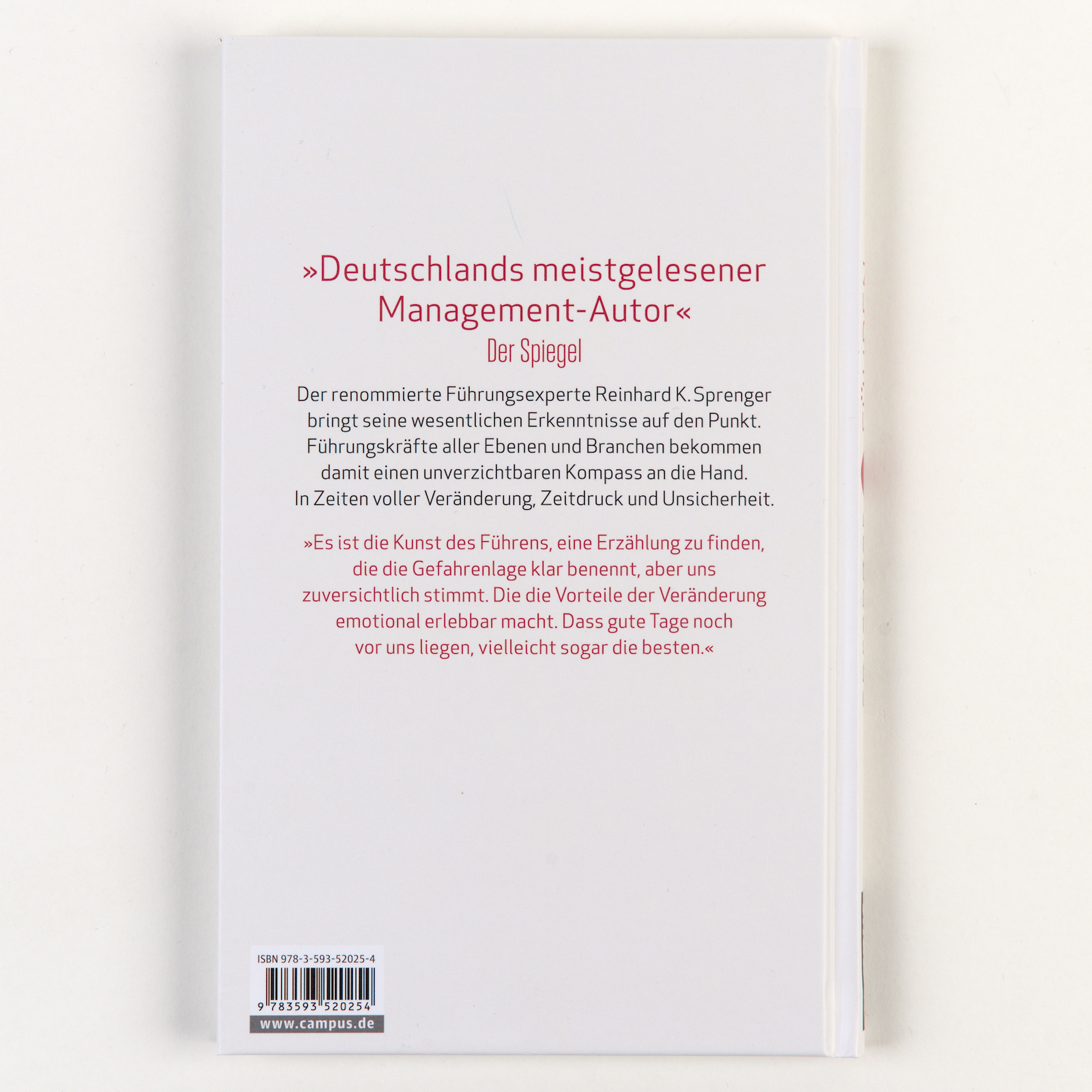 Der renommierte Führungsexperte Reinhard K. Sprenger bringt in diesem Buch seine wesentlichen Erkenntnisse auf den Punkt. Führungskräfte aller Ebenen und Branchen bekommen damit einen unverzichtbaren Kompass an die Hand. In Zeiten voller Veränderung, Zeitdruck und Unsicherheit.