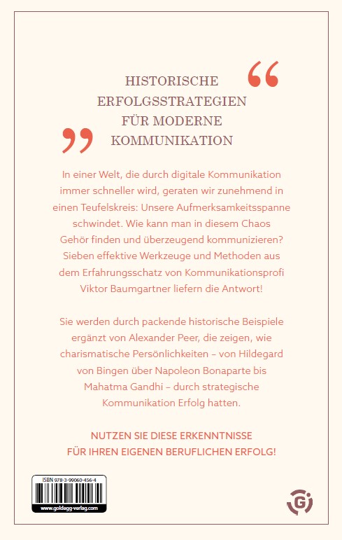 | Schlagworte | Arbeitswelt und Kommunikation • besser werden • Buch • Buchrezension Kommunikation • business • Charismatische Führung • Digitalisierung und Kommunikation • Effektive Kommunikation • erfolgreiche Kommunikation • fesselnde historische Beispiele • Firma • Führungsentscheidungen • Geschäft • Geschenk für Männer • Geschichte • Geschichtenerzähler Alexander Peer • historische Führer und Kommunikation • historische Kommunikationstechniken • historische Parallelen • Kollegen • Kolleginnen • Kommunikation im Wandel • Kommunikationsmuster • Kommunikationsstrategien • Kommunikationstraining • Kunstgeschichte • Mahatma Gandhi Kommunikation • Manipulation • Meeting • moderne Arbeitswelt Kommunikation • moderne Kommunikationstechniken • Napoleon Bonaparte Kommunikation • Neuerscheinung 2025 • optimieren • praxisnahe Kommunikation • Ratgeber • ratgeber kommunikation • Reden • Rhetorik • Sprachkunst • Sprechen • überreden • Überzeugen • überzeugende Kommunikation • Überzeugungstechniken • Verhandeln • Viktor Baumgartner Buch • Vortrag • zeitlose Kommunikationstechniken • Zukunft der Kommunikation |