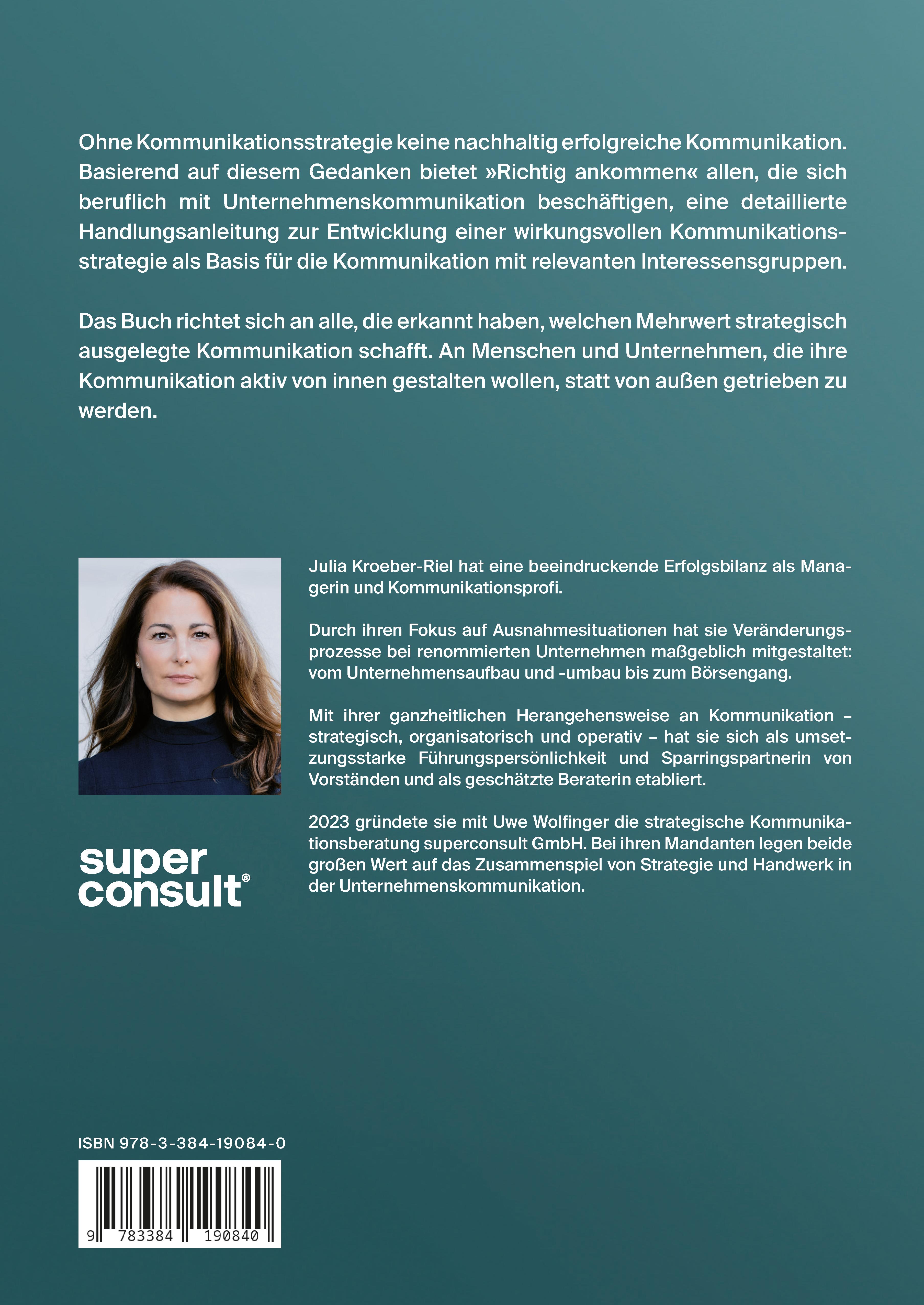Ohne Kommunikationsstrategie keine nachhaltig erfolgreiche Kommunikation. Ausgehend von diesem Gedanken bietet "Richtig ankommen" eine detaillierte Handlungsanleitung zur Entwicklung einer wirkungsvollen Kommunikationsstrategie. Ob Unternehmenskommunikation, CEO-Positionierung oder Change-Kommunikation - das Buch zeigt, welche Kraft eine klar definierte Kommunikationsstrategie mit dem richtigen Narrativ und treffenden Kernbotschaften entfalten kann. Für Selbständige, Personenmarken, Start-ups, Mittelstand und Konzerne. In jeder Phase der Unternehmensentwicklung.