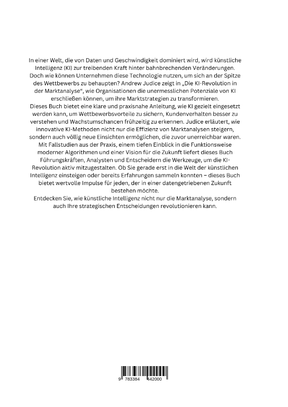 In einer Welt, die von Daten und Geschwindigkeit dominiert wird, wird künstliche Intelligenz (KI) zur treibenden Kraft hinter bahnbrechenden Veränderungen. Doch wie können Unternehmen diese Technologie nutzen, um sich an der Spitze des Wettbewerbs zu behaupten? Andrew Judice zeigt in "Die KI-Revolution in der Marktanalyse", wie Organisationen die unermesslichen Potenziale von KI erschließen können, um ihre Marktstrategien zu transformieren.Dieses Buch bietet eine klare und praxisnahe Anleitung, wie KI gezielt eingesetzt werden kann, um Wettbewerbsvorteile zu sichern, Kundenverhalten besser zu verstehen und Wachstumschancen frühzeitig zu erkennen. Judice erläutert, wie innovative KI-Methoden nicht nur die Effizienz von Marktanalysen steigern, sondern auch völlig neue Einsichten ermöglichen, die zuvor unerreichbar waren.Mit Fallstudien aus der Praxis, einem tiefen Einblick in die Funktionsweise moderner Algorithmen und einer Vision für die Zukunft liefert dieses Buch Führungskräften, Analysten und Entscheidern die Werkzeuge, um die KI-Revolution aktiv mitzugestalten. Ob Sie gerade erst in die Welt der künstlichen Intelligenz einsteigen oder bereits Erfahrungen sammeln konnten - dieses Buch bietet wertvolle Impulse für jeden, der in einer datengetriebenen Zukunft bestehen möchte.Entdecken Sie, wie künstliche Intelligenz nicht nur die Marktanalyse, sondern auch Ihre strategischen Entscheidungen revolutionieren kann.