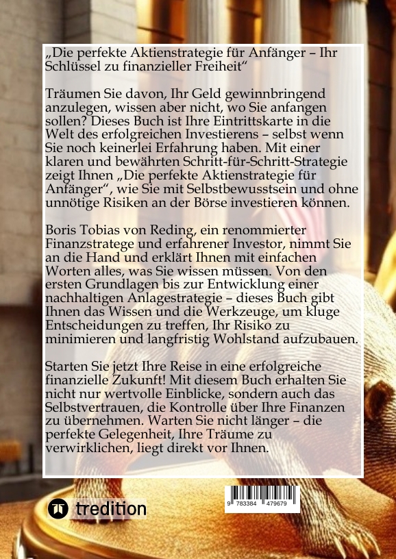 Boris Tobias von Reding ist ein Autor und Finanzstratege, der für seine Arbeit im Bereich persönliche Finanzen und Investitionen bekannt ist. Er erlangte Aufmerksamkeit, weil er bereits im Alter von 14 Jahren eine zugängliche und sichere Anlagestrategie entwickelte und sich dabei darauf konzentrierte, wie Personen mit begrenztem Anfangskapital erfolgreich an der Börse investieren können. Sein Ansatz legt Wert auf Einfachheit und Praktikabilität und hilft den Lesern, potenzielle Fallstricke beim Investieren zu verstehen und zu bewältigen. Zu von Redings bemerkenswerten Werken gehören „How to Become a Millionaire on the Stock Exchange“, ein prägnanter Leitfaden für Einsteiger-Investoren, und „The Law of Attraction: The Step-by-Step Manual on How to Become Wealthy“. Diese Bücher kombinieren Finanzberatung mit Mindset-Coaching und ermutigen die Leser, einen positiven und strategischen Ansatz zur Vermögensbildung zu verfolgen. Sein beruflicher Hintergrund ist vielfältig und umfasst Rollen als Investor, Händler und sogar kreative Unternehmungen wie Musikproduktion und Webdesign.