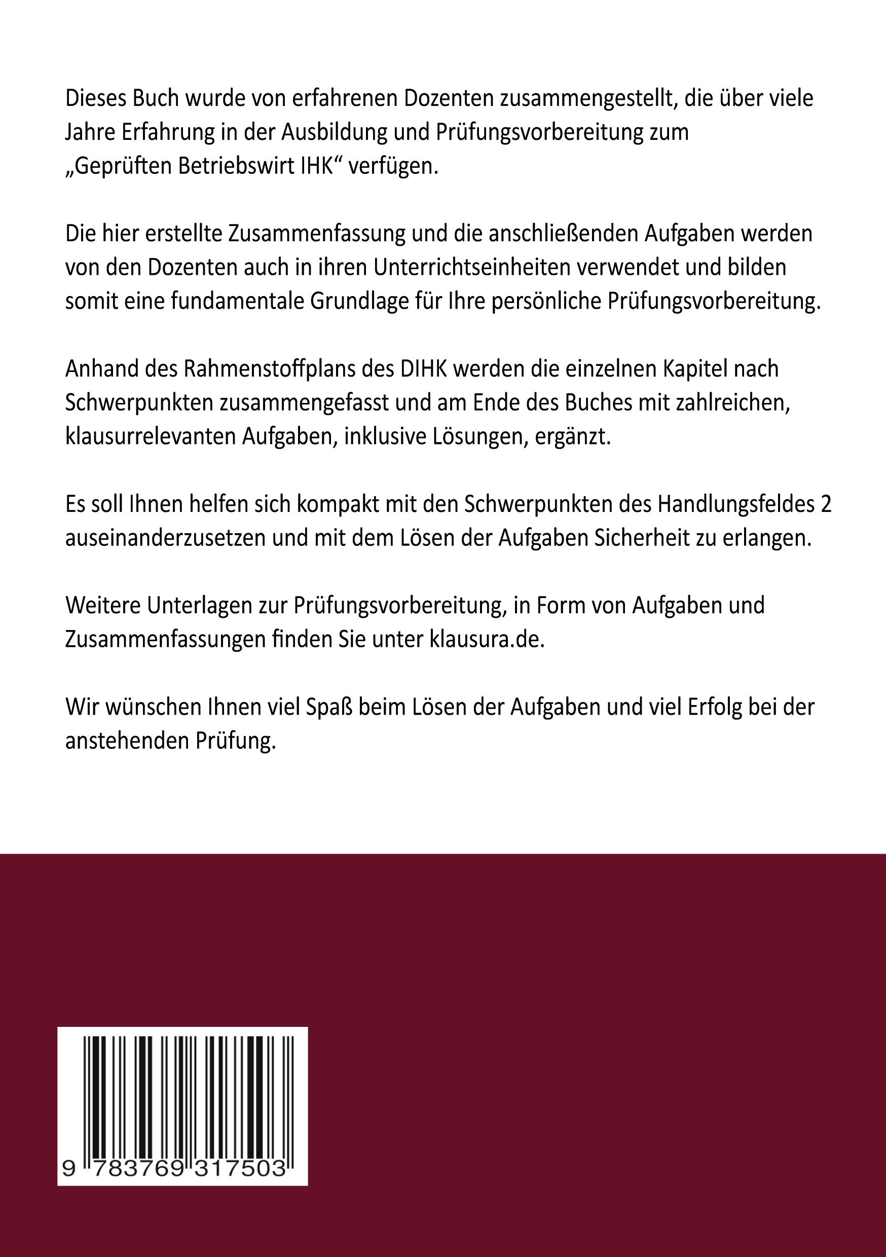 Anhand des Rahmenstoffplans des DIHK werden die einzelnen Kapitel nach Schwerpunkten zusammengefasst und am Ende des Buches mit zahlreichen, klausurrelevanten Aufgaben, inklusive Lösungen, ergänzt.