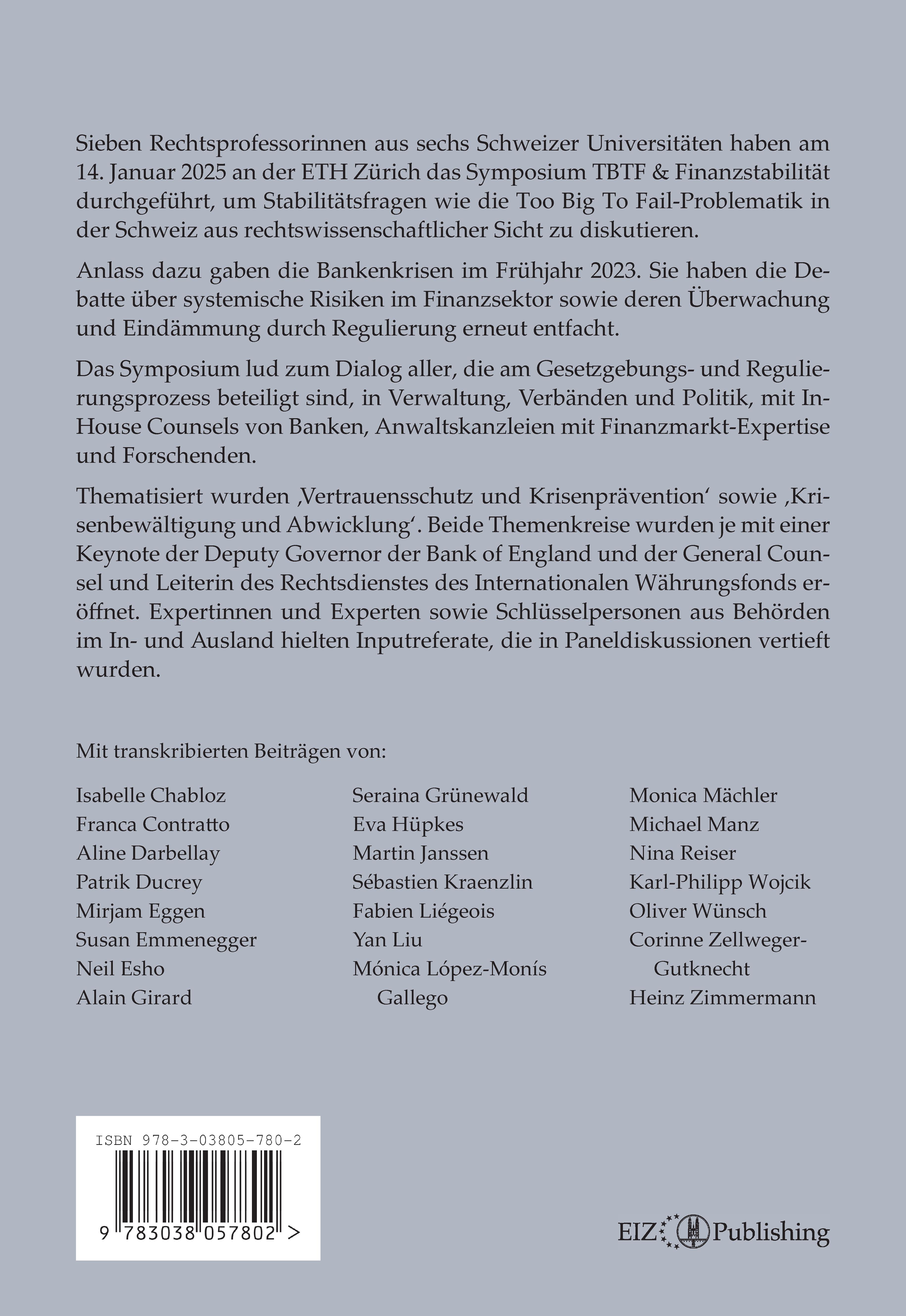 Sieben Rechtsprofessorinnen aus sechs Schweizer Universitäten haben am 14. Januar 2025 an der ETH Zürich das Symposium TBTF & Finanzstabilität durchgeführt, um Stabilitätsfragen wie die Too Big To Fail-Problematik in der Schweiz aus rechtswissenschaftlicher Sicht zu diskutieren.Anlass dazu gaben die Bankenkrisen im Frühjahr 2023. Sie haben die Debatte über systemische Risiken im Finanzsektor sowie deren Überwachung und Eindämmung durch Regulierung erneut entfacht.Das Symposium lud zum Dialog aller, die am Gesetzgebungs- und Regulierungsprozess beteiligt sind, in Verwaltung, Verbänden und Politik, mit In-House Counsels von Banken, Anwaltskanzleien mit Finanzmarkt-Expertise und Forschenden.Thematisiert wurden «Vertrauensschutz und Krisenprävention» sowie «Krisenbewältigung und Abwicklung». Beide Themenkreise wurden je mit einer Keynote der Deputy Governor der Bank of England und der General Counsel und Leiterin des Rechtsdienstes des Internationalen Währungsfonds eröffnet. Expertinnen und Experten sowie Schlüsselpersonen aus Behörden im In- und Ausland hielten Inputreferate, die in Paneldiskussionen vertieft wurden.