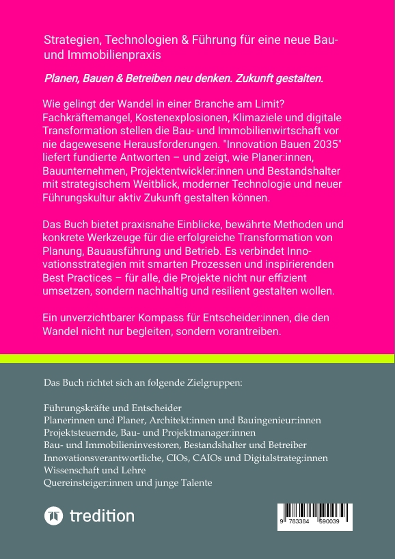 | Schlagworte | Bauinnovation • Digitale Bauwirtschaft • Führung im Wandel • Klimaneutralität • Nachhaltige Immobilienpraxis • Resiliente Bauprozesse • Strategisches Bauen • Technologie & Bau • Transformation • Zukunft der Planung |