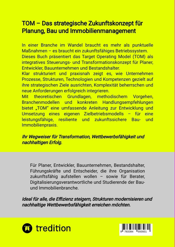 | Schlagworte | Bau- und Immobilienbranche • Digitale Zukunft • Führung • Management Innovation • Organisationsentwicklung • Strategisches Management • Strukturen & Prozesse • Target Operating Model (TOM) • Transformation |