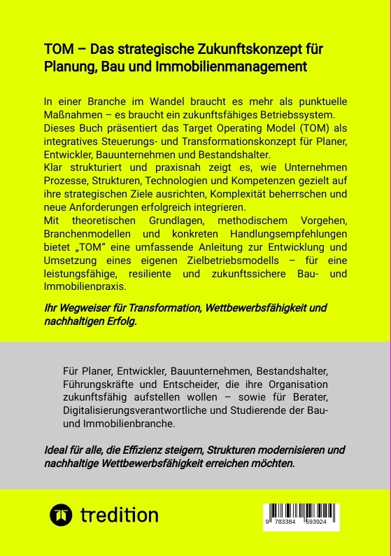 | Schlagworte | Bau- und Immobilienbranche • Digitale Zukunft • Führung • Management Innovation • Organisationsentwicklung • Strategisches Management • Strukturen & Prozesse • Target Operating Model (TOM) • Transformation |
