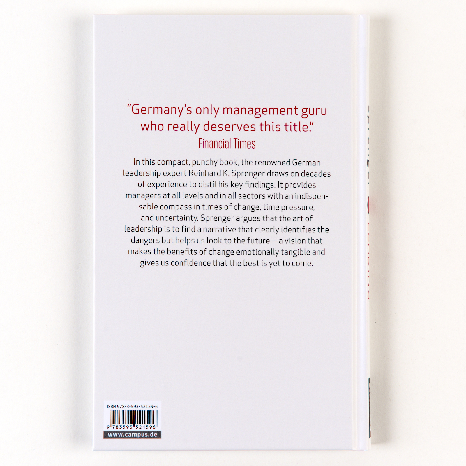 In this compact, punchy book, the renowned German leadership expert Reinhard K. Sprenger draws on decades of experience to distil his key findings. It provides managers at all levels and in all sectors with an indispensable compass in times of change, time pressure, and uncertainty. Sprenger argues that the art of leadership is to find a narrative that clearly identifies the dangers but helps us look to the future—a vision that makes the benefits of change emotionally tangible and gives us confidence that the best is yet to come.