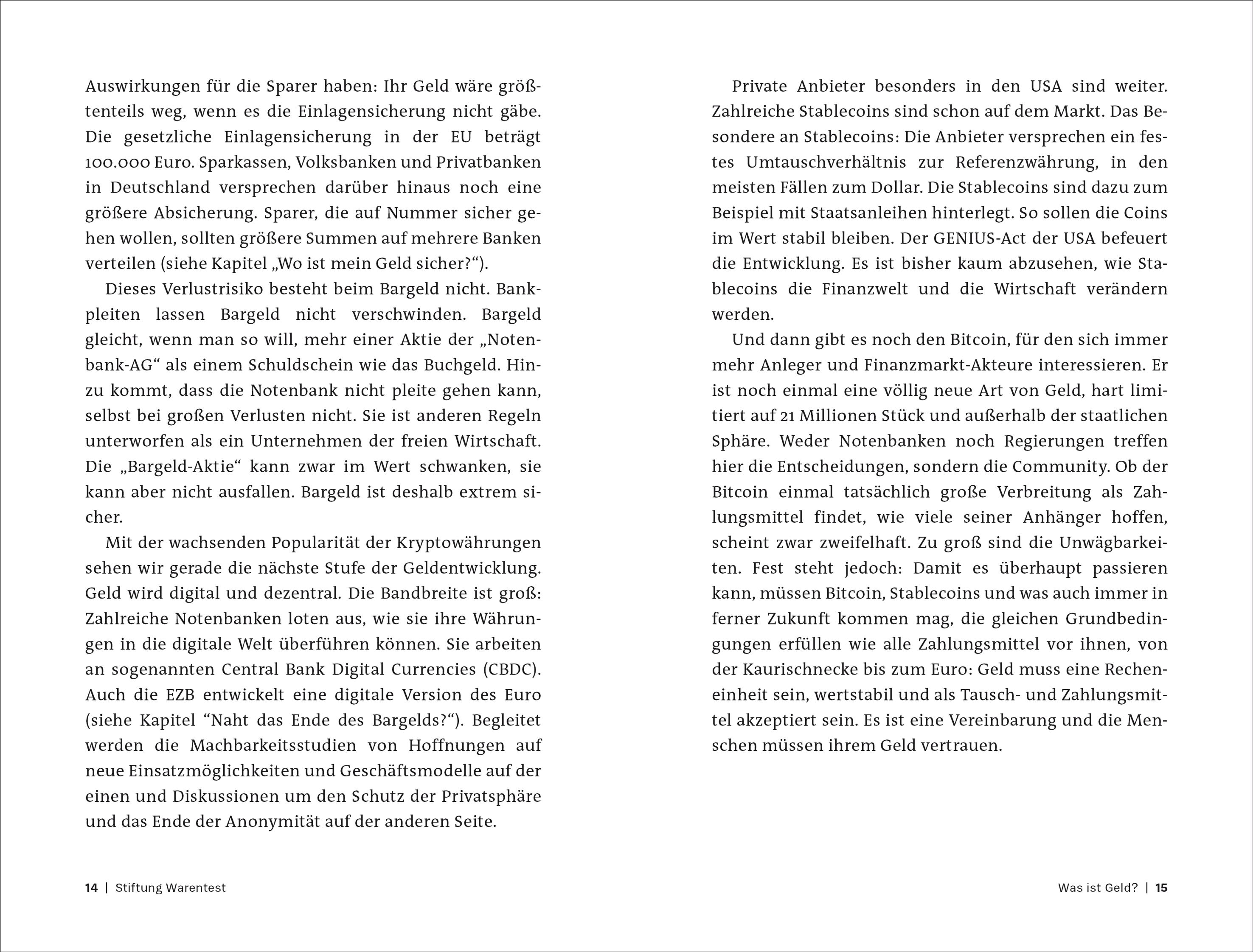 | Schlagworte | Altersarmut • Banken • Bitcoin • Brutto und netto • Deflation • Euro • Finanzielle Freiheit • Finanzwissen • Geldanlage • Geld erklärt • Geldsystem • Geld und Beziehung • Geld und Familie • Geschichte des Geldes • Inflation • kryptowährungen • Mehr Geld • Rentensystem • Sachbuch Geld • Staatsverschuldung • Steuersystem • Vermögen in Deutschland • Währungen • Was kostet ein Kind? |