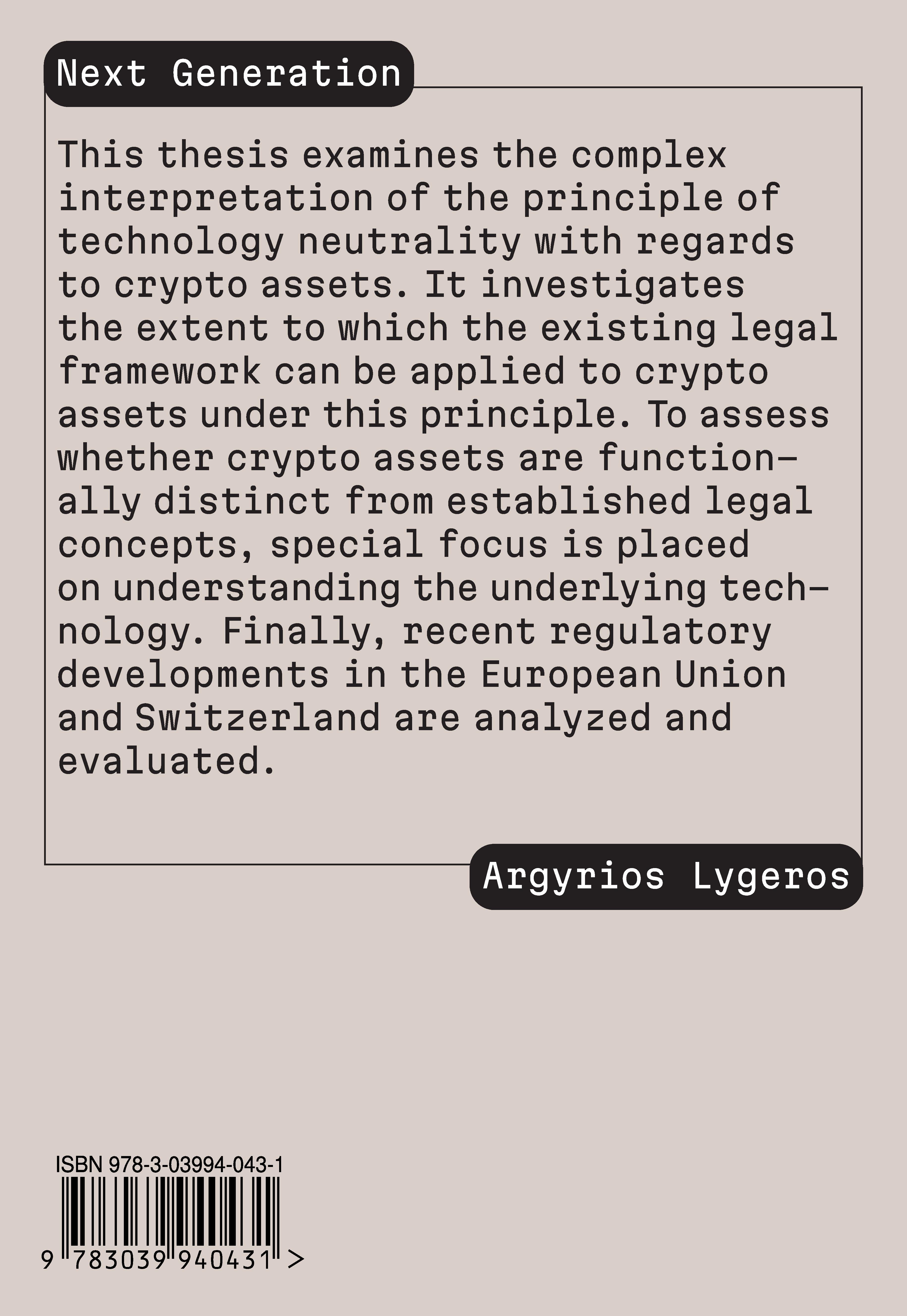 This thesis examines the complex interpretation of the principle of technology neutrality with regards to crypto assets. It investigates the extent to which the existing legal framework can be applied to crypto assets under this principle. To assess whether crypto assets are functionally distinct from established legal concepts, special focus is placed on understanding the underlying technology. Finally, recent regulatory developments in the European Union and Switzerland are analyzed and evaluated.